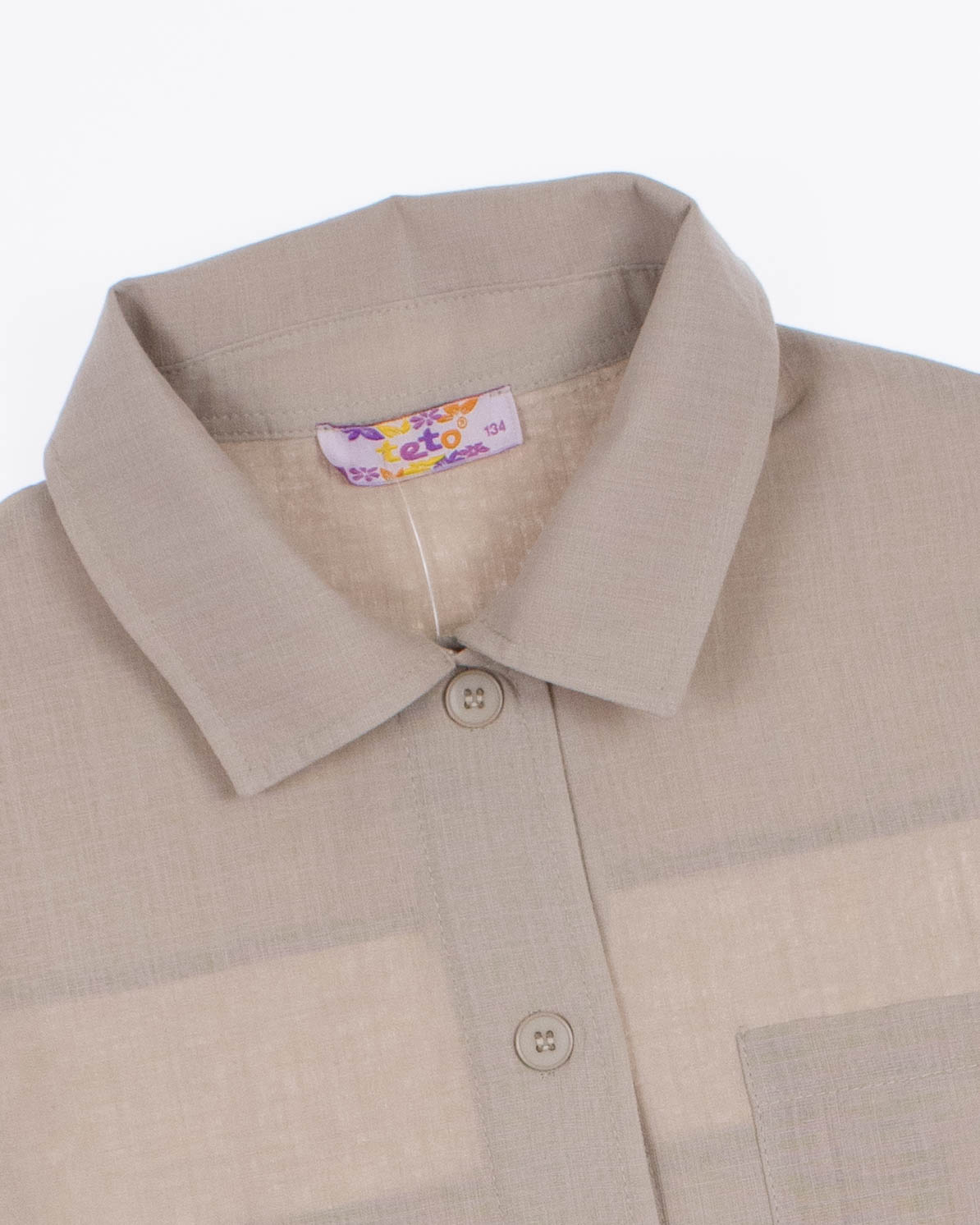 Летняя рубашка TETO для девочки оптом, производства Турция. Рубашка выполнена из хлопка, застегивается на пуговицы, на спине расположен декоративный элемент.