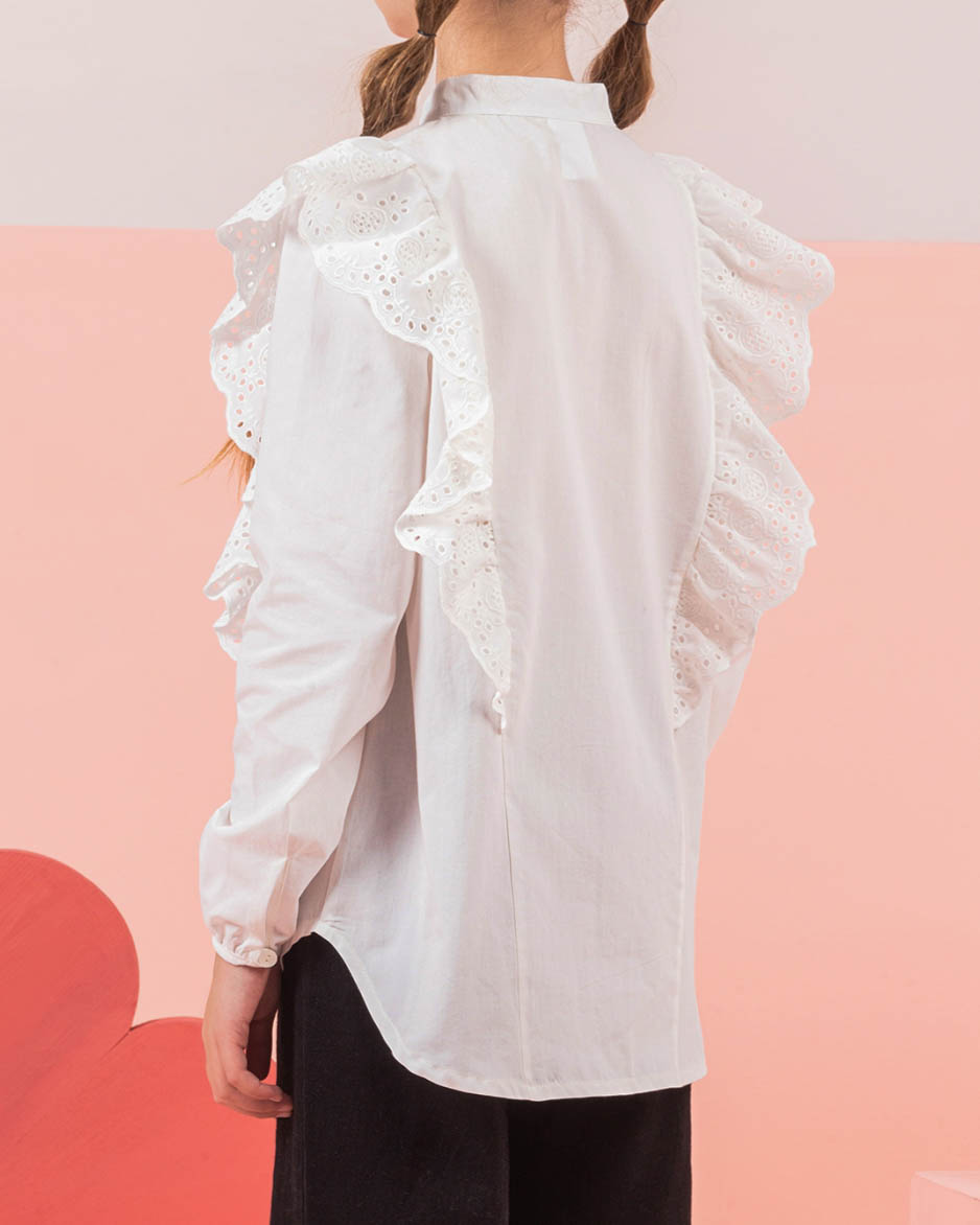 Школьная блузка от торговой марки DMB из Турции оптом - это идеальное сочетание стиля, качества и комфорта. Изготовленная из шелковистого хлопка молочного цвета, эта блузка не только приятна на ощупь, но и выглядит очень элегантно. Элегантный воротник-стойка и приталенный силуэт делают эту блузку отличным выбором для школьной униформы. Рюши из красивого шитья добавляют шарма и женственности, делая блузку нарядной и праздничной. Независимо от того, носить ли эту блузку в школу или на праздник, она будет выглядеть стильно и аккуратно. DMB - это гарантия качества и отличного внешнего вида, сделанного с любовью и профессионализмом.