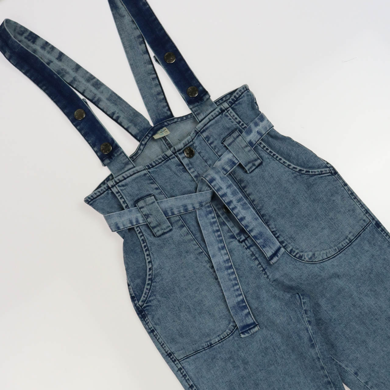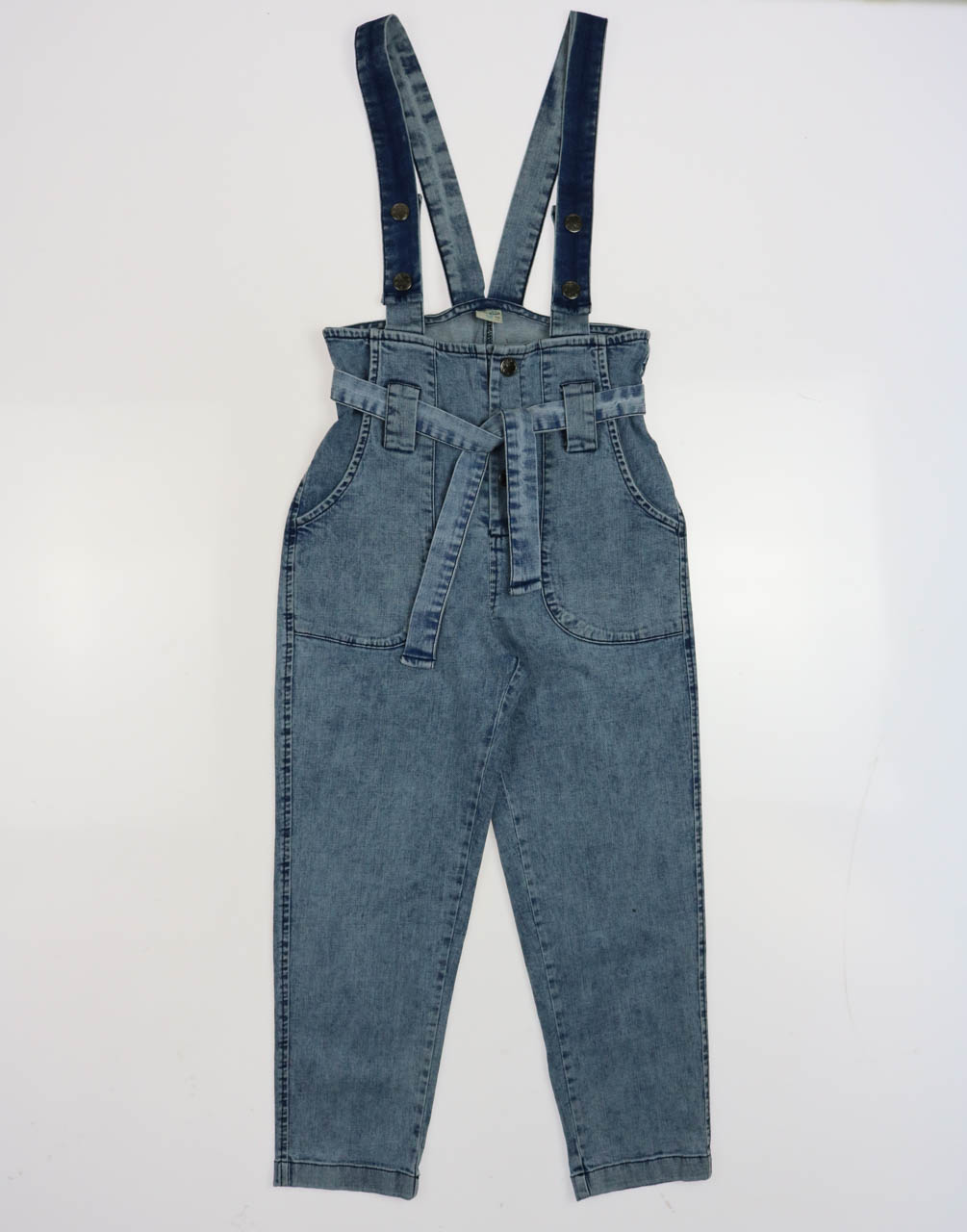 Детский джинсовый комбинезон DMB для девочки оптом. Брюки заужены, по бокам два кармана, лямки регулируются по длине. Модель с завышенной талией.