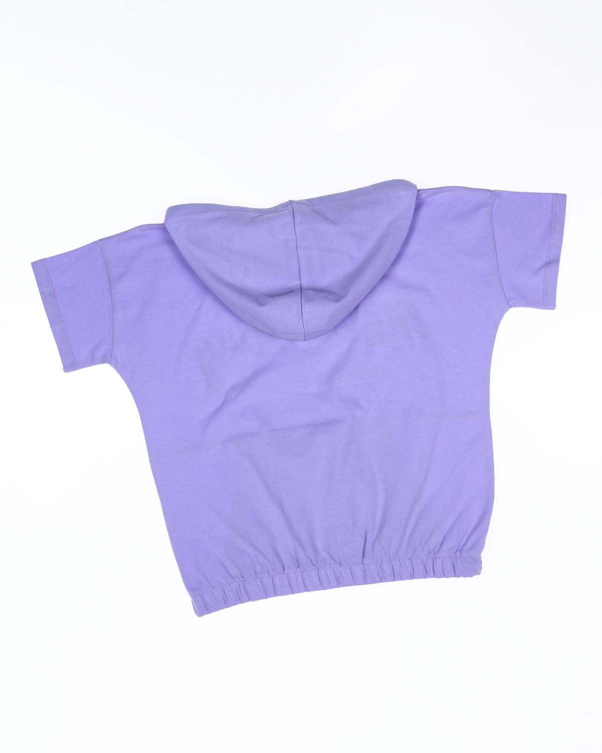 Футболка прямого кроя с капюшоном на резинке. На животе футболки карман по типу кенгуру.