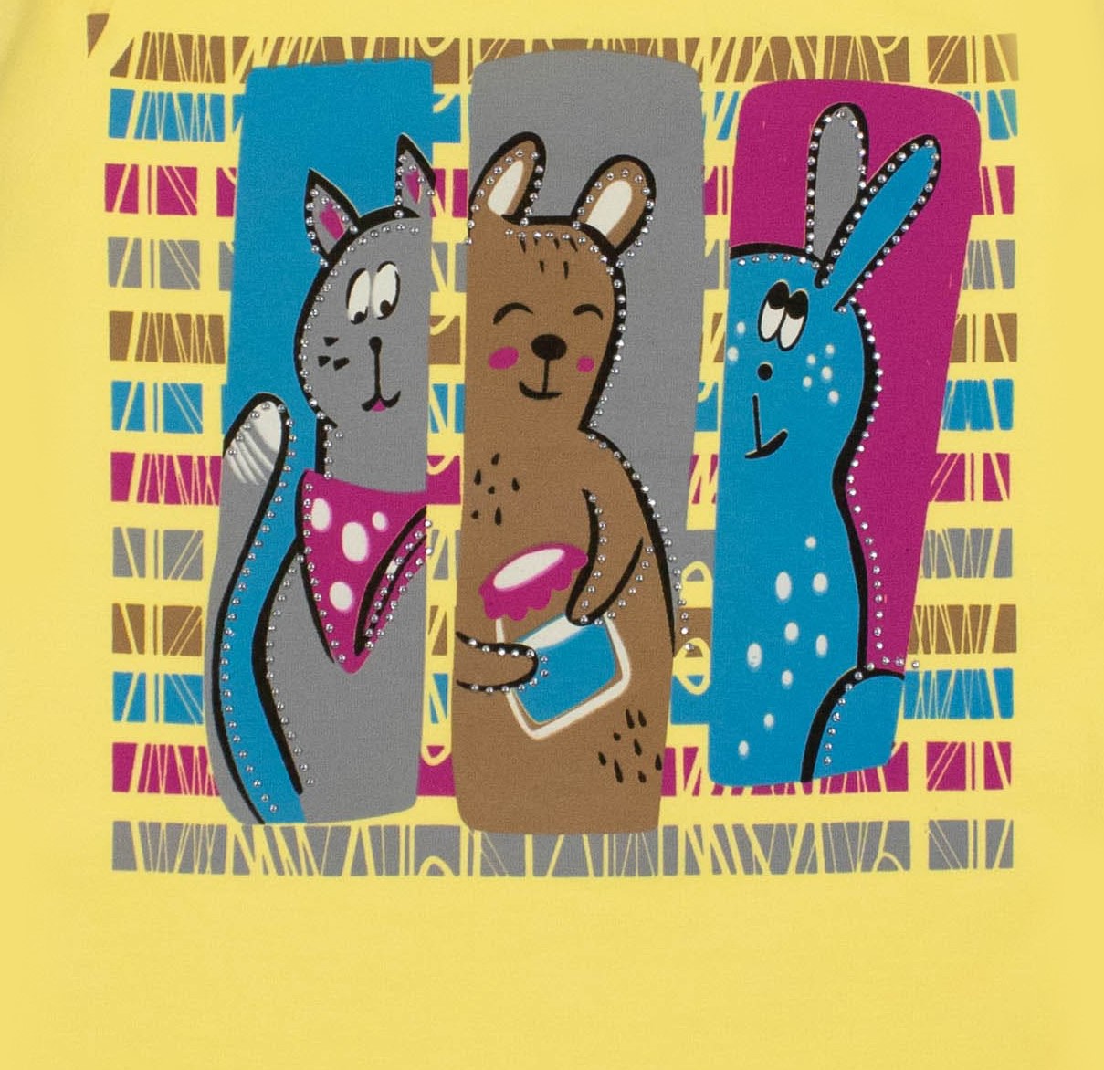 Футболка ECRIN для девочки оптом, производства Турция. Модель приталенного кроя из мягкого и эластичного трикотажа,  принт украшен стразами.
