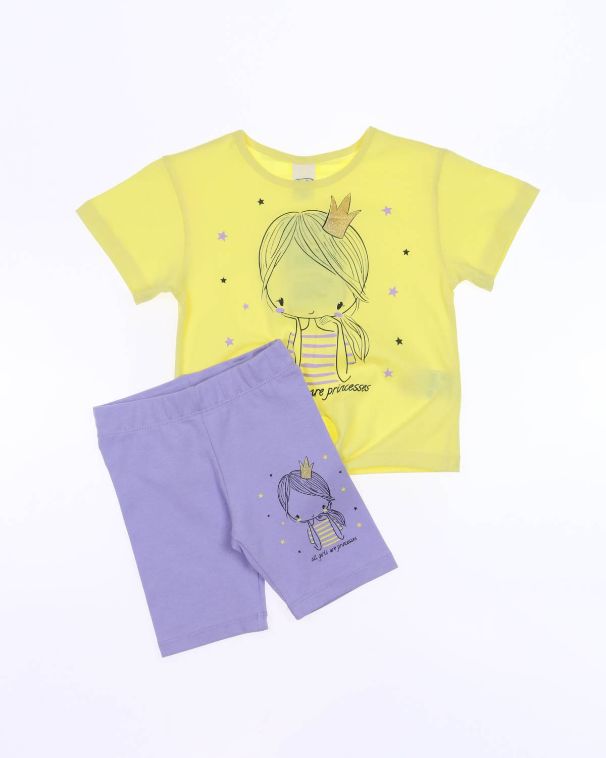 Комплект для девочки состоит из футболки с очаровательным принтом, выполненной из хлопкового полотна кулирка, ткань тонкая и дышащая и однотонных велосипедок, выполненных из хлопкового полотна кулирка с добавлением лайкры, ткань хорошо тянется и отлично садится по фигуре. Костюм замечательно подойдёт для прогулок в жаркие летние дни или в качестве домашнего комплекта