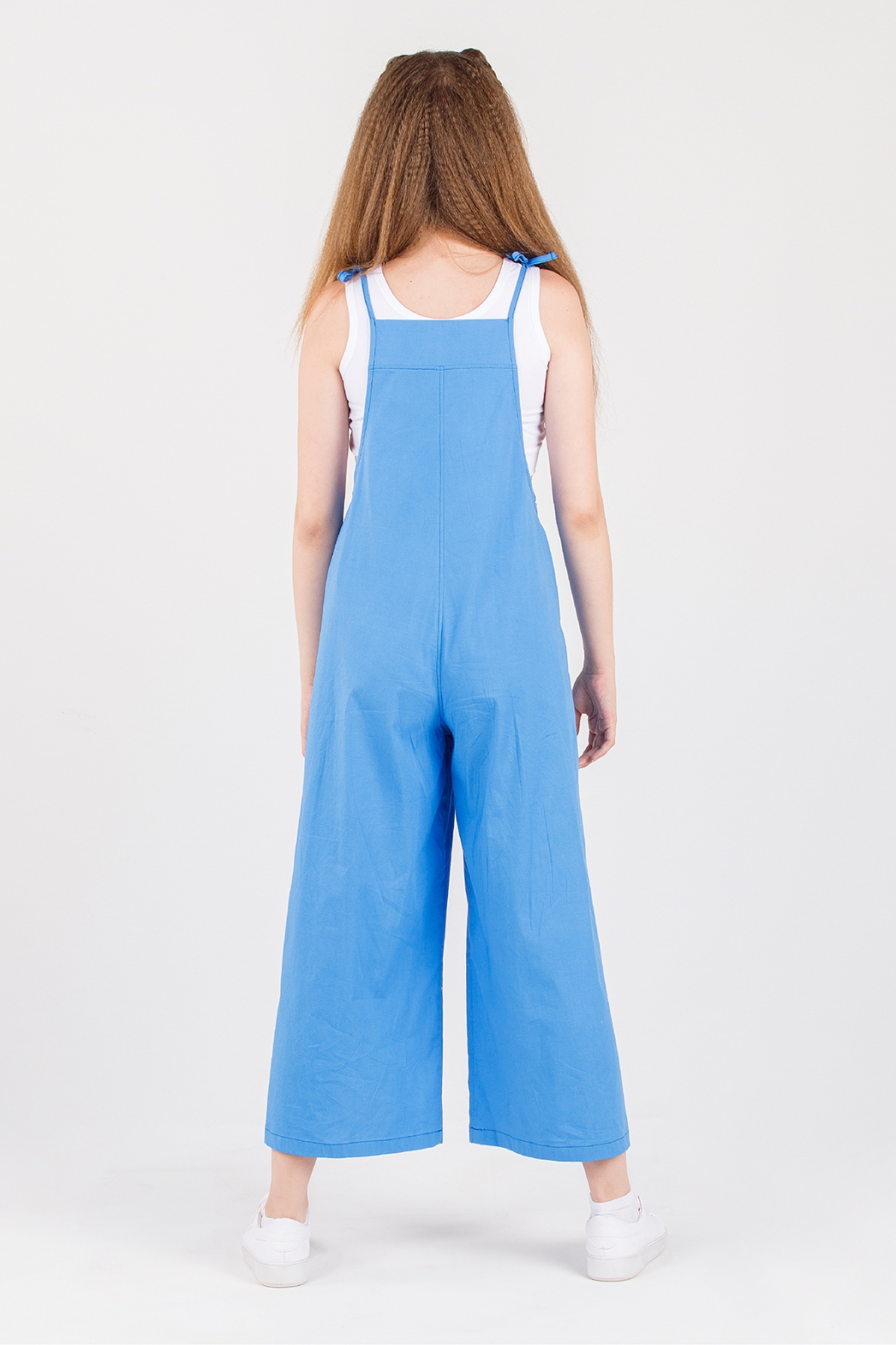Оригинальный хлопковый комбинезон Dmb на тонких бретелях. Комплект дополняет трикотажный, белый кроп-топ с широкими лямками.
