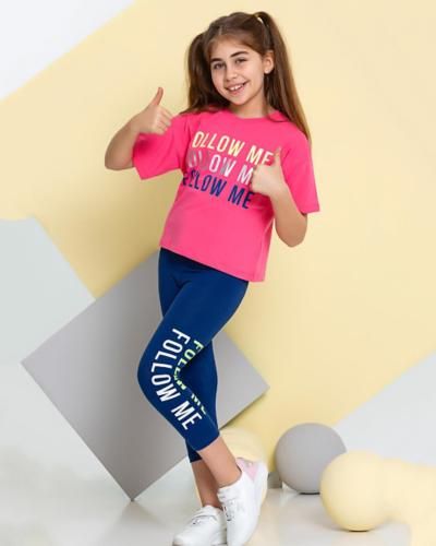Укороченная футболка со спущенным рукавом и бриджи  делают летний комплект оригинальным и стильным.  Костюм выполнен из мягкого трикотажа кулирка.