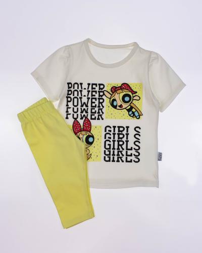 Костюм E.K.Y STAR для девочки оптом, производства Турция. Трикотажный материал обеспечивает комфортную посадку и свободу движений, а также хорошую вентиляцию, что особенно важно в жаркую погоду. Костюм можно использовать как домашнюю одежду или для посещения детского сада. Он очень практичный, ткань не мнется и легко стирается, что облегчает уход за ним. Качество ткани этого комплекта премиум, что гарантирует его долговечность. В целом, трикотажный костюм для девочек - это отличный выбор для летних прогулок, активных игр и повседневной носки. Он практичный, удобный и красивый, что делает его идеальным для стильных и активных девочек. Принт на футболке украшен стразами.
