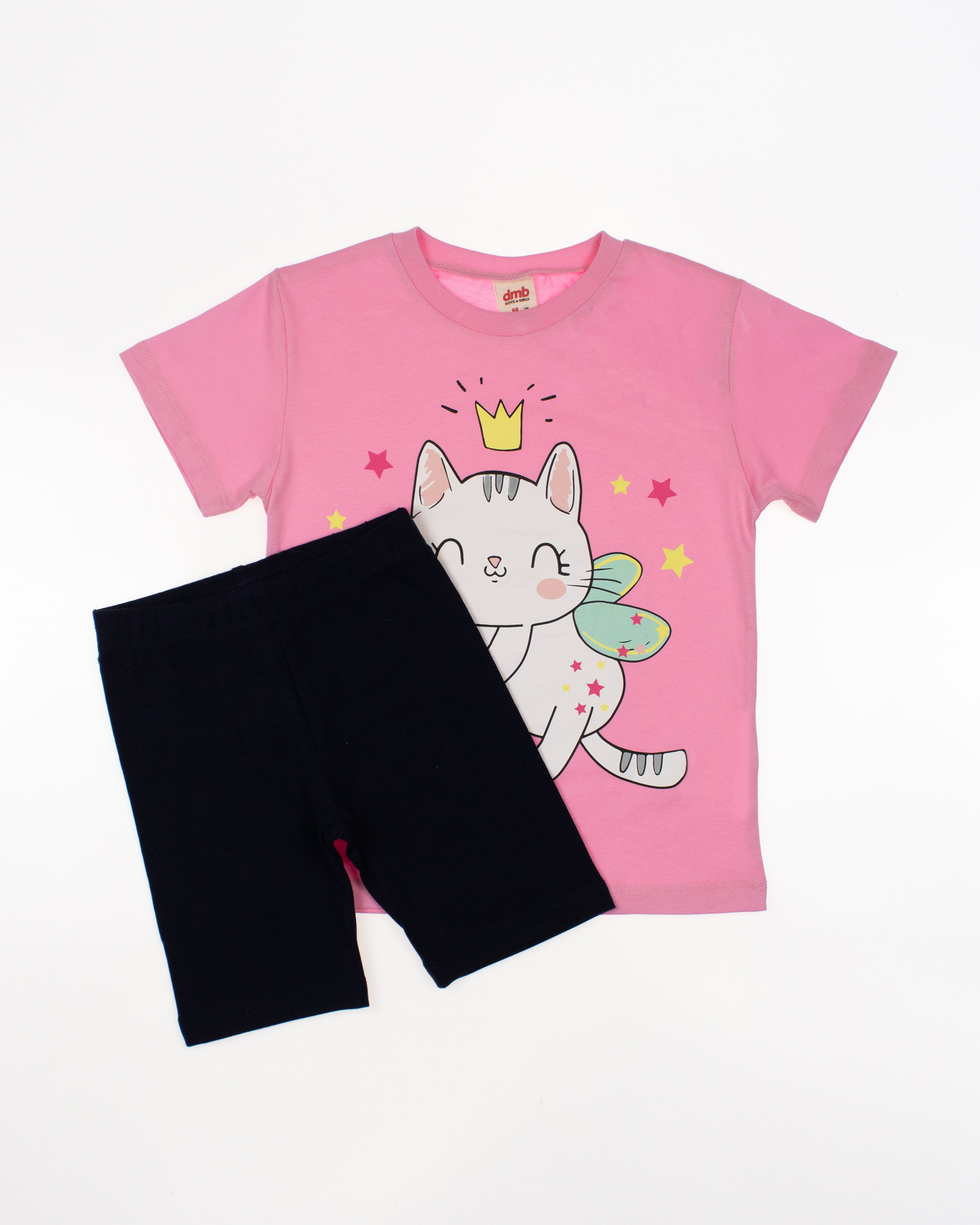 Детский костюм торговой марки DMB - это отличный выбор для маленькой модницы! Произведенный в Турции из высококачественного трикотажа кулирка, этот костюм обеспечивает комфорт и удобство на целый день. Приталенный крой делают эту футболку стильной и современной. Принт на передней части футболки придает ей яркость и оригинальность. Этот костюм подойдет как для повседневной носки, так и для активного отдыха на свежем воздухе. А оптовая цена делает его отличным выбором для магазинов и интернет-магазинов детской одежды. Порадуйте малышей качественной и стильной одеждой от DMB !