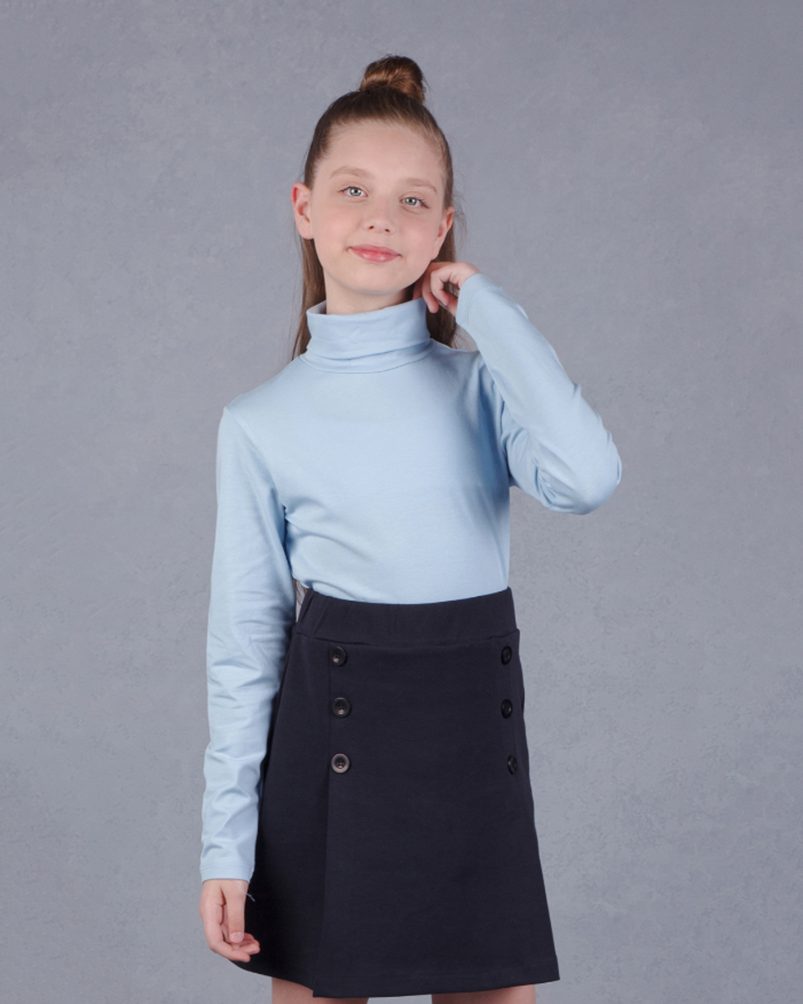 Водолазка Dmb для девочки оптом, с длинными рукавами, классическая. Выполнена из тонкого, приятного на ощупь, хлопкового трикотажа с добавлением эластана. Традиционная водолазка - незаменимый элемент школьной одежды для девочки. Торговая марка  Dmb предлагает большой ассортимент качественной, красивой, классической школьной  одежды  для детей и подростков.