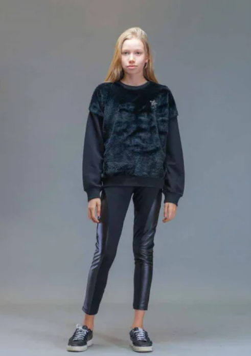 Стильные лосины MARIONS для девочки с вставками из экокожи, выполнены из качественного хлопка с добавлением эластана, хорошо держат форму и не растягиваются после носки.