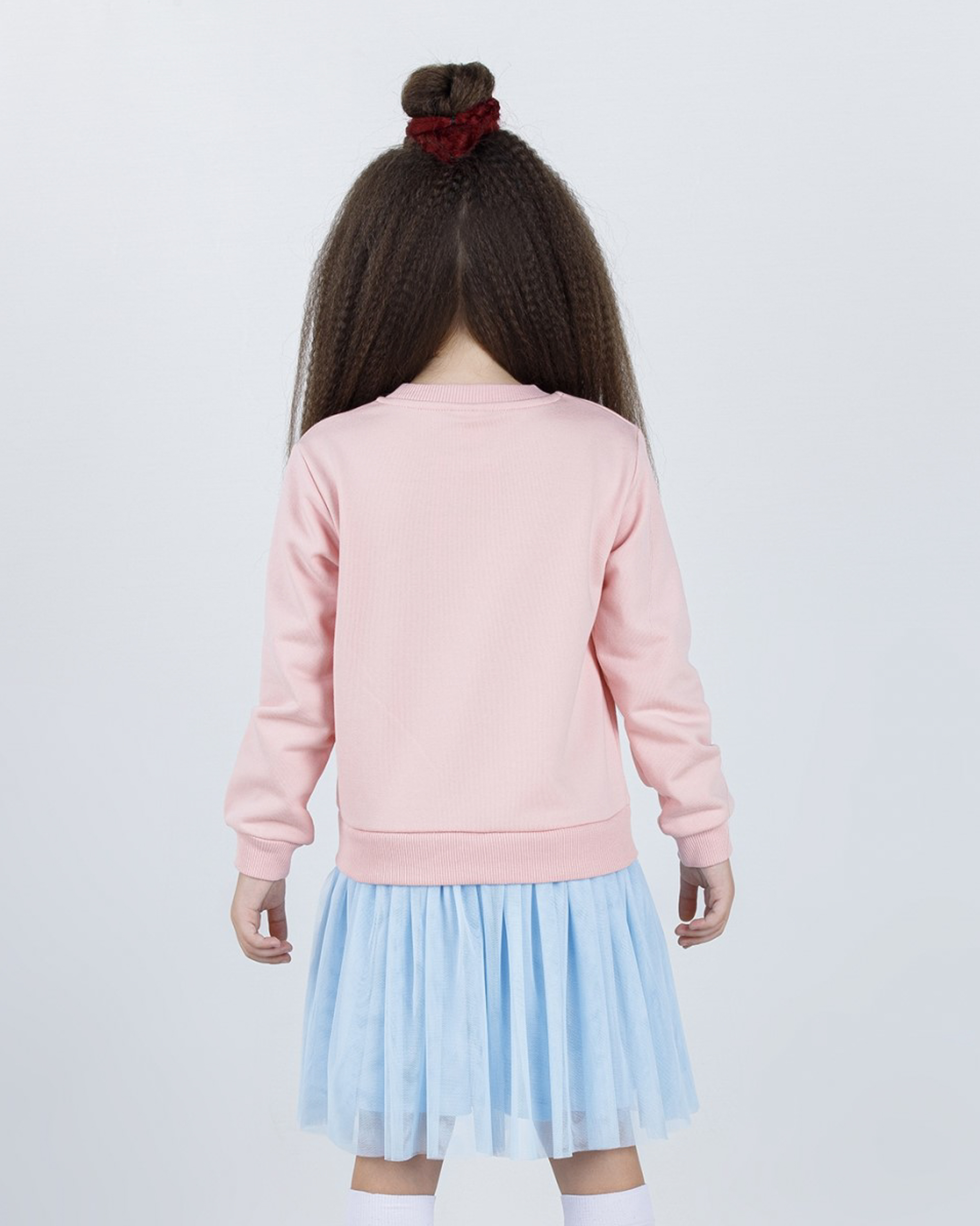 Платье Dmb для девочки оптом, выполнено из трикотажа футер (петля) с длинными рукавами и округлой горловиной, юбка трехслойная сшита из сетки. Платье украшено оригинальным принтом.