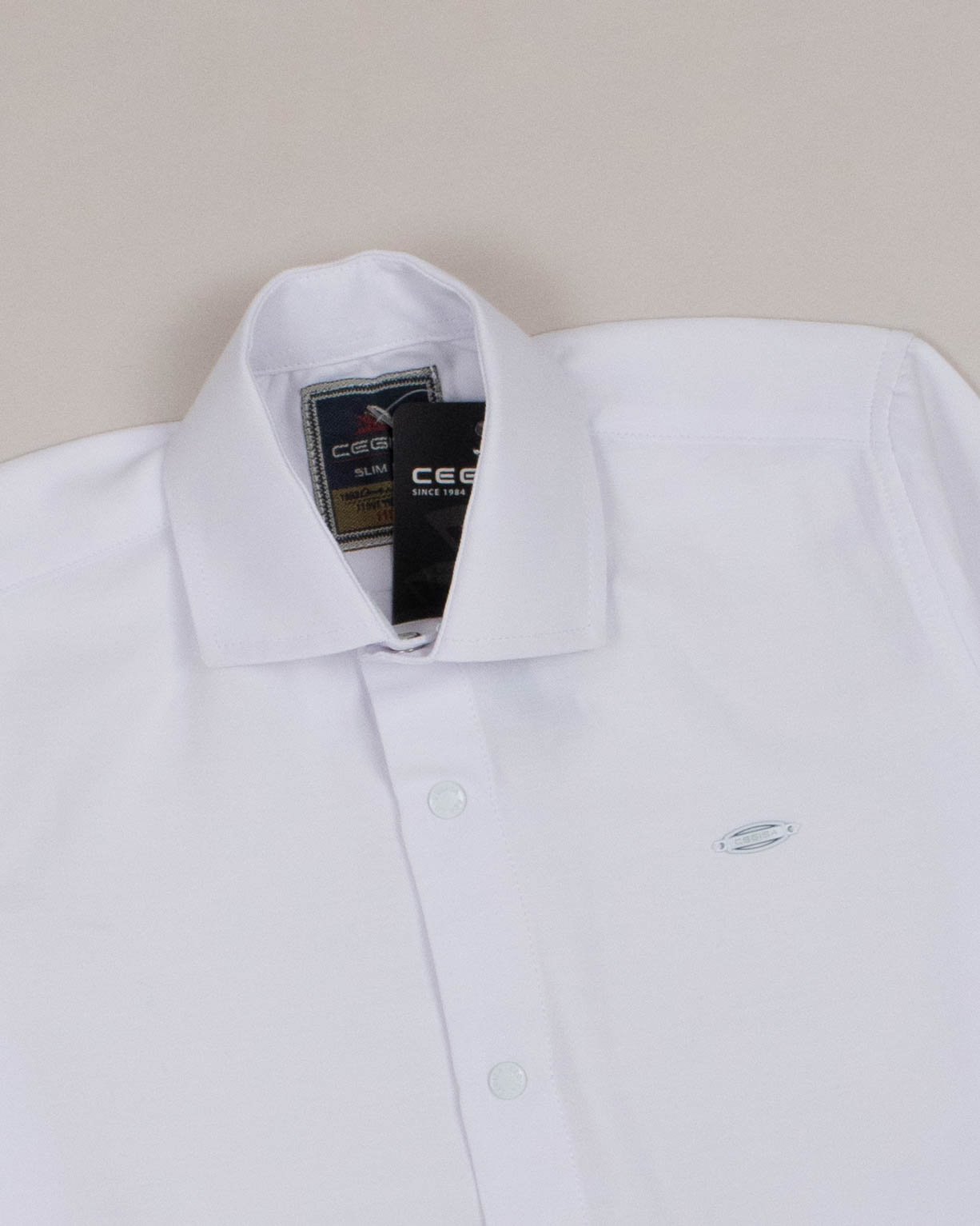 Рубашка CEGISA прямого кроя оптом. Модель с длинным рукавом и классическим отложным воротничком создает элегантный и аккуратный образ. Застежка на кнопки обеспечивает удобство и практичность. Cмесовая ткань из хлопка с лайкрой делает рубашку мягкой, удобной и легкой в уходе. Она хорошо сохраняет форму и цвет после многих стирок, что делает её надежным выбором для повседневного использования.