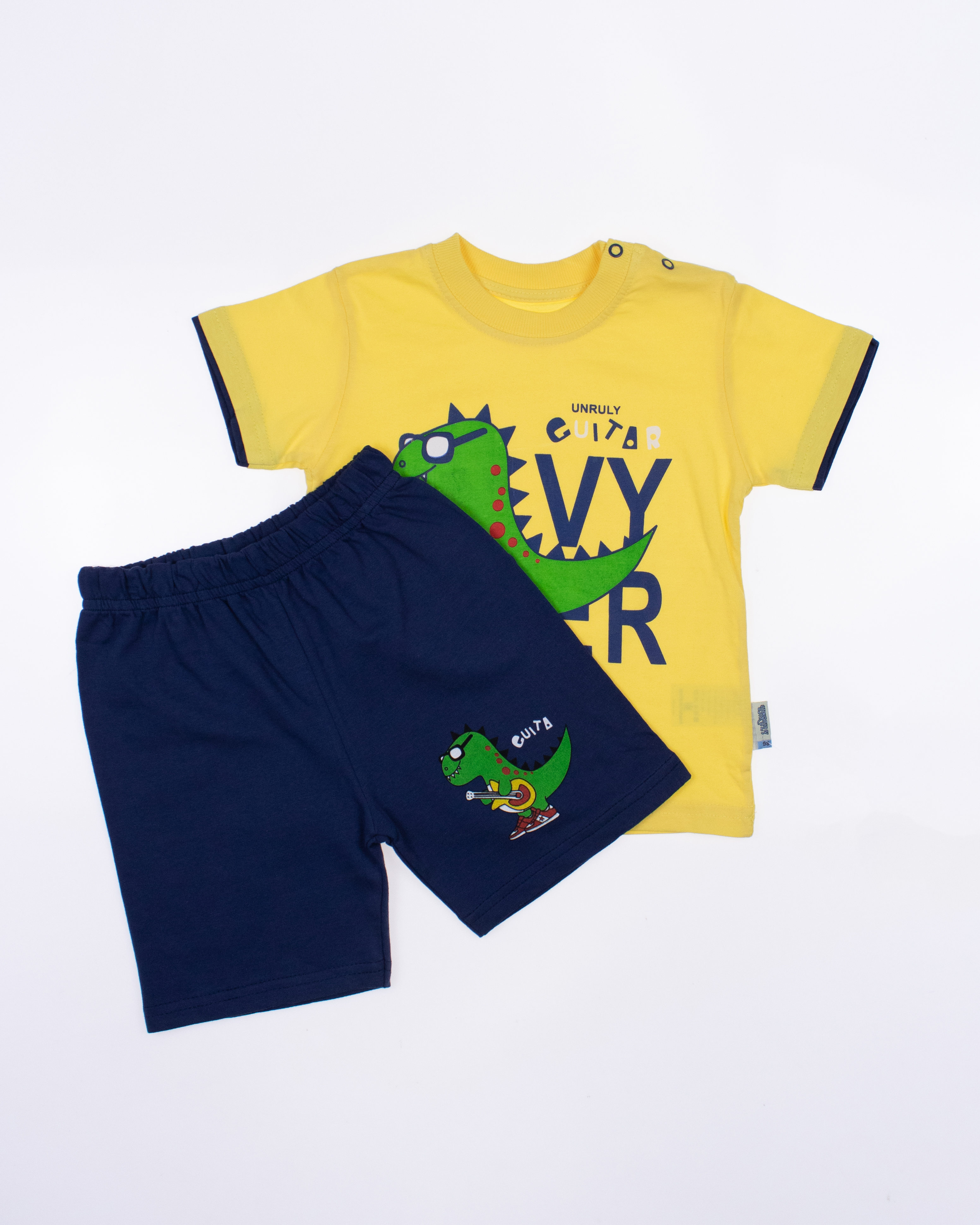 Детский костюм UNRULY выполнена из хлопкового полотна и оформлена печатным принтом. Футболка прямого кроя, с округлым вырезом горловины. Шорты умеренного объема без  карманов.