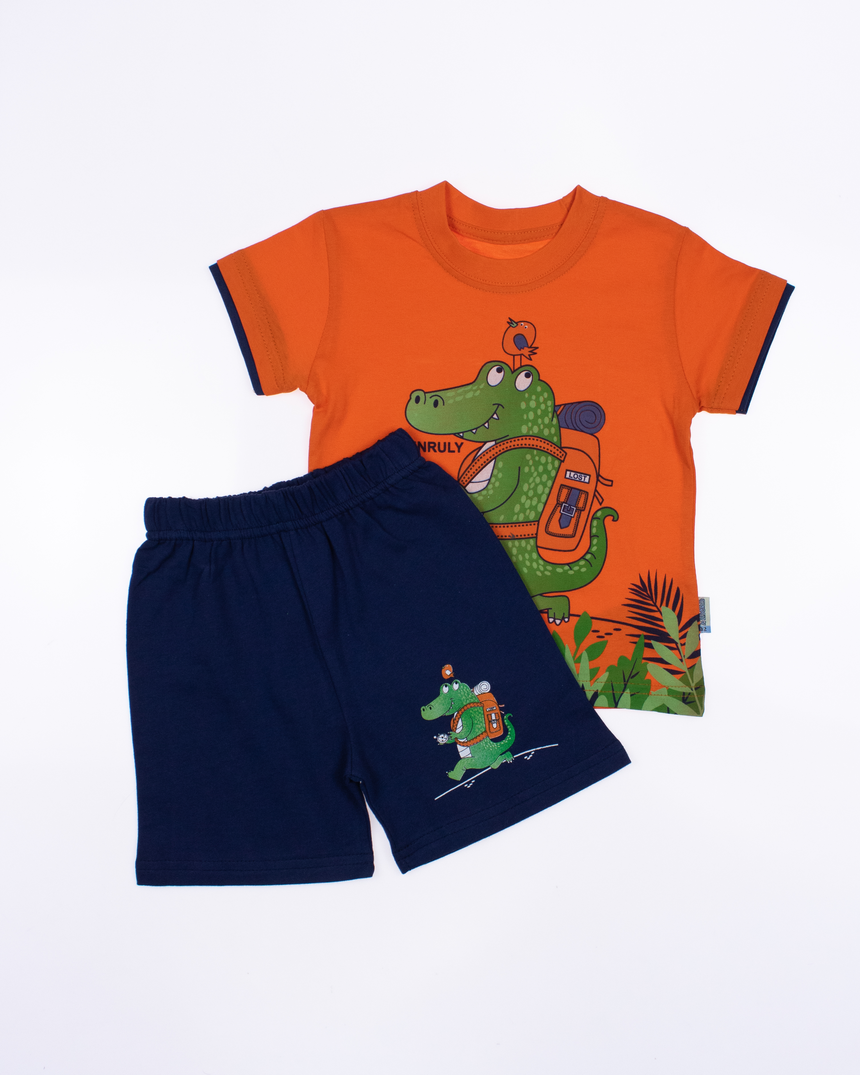 Детский костюм UNRULY выполнен из хлопкового полотна и оформлен печатным принтом. Футболка прямого кроя, с округлым вырезом горловины. Шорты умеренного объема, без карманов.