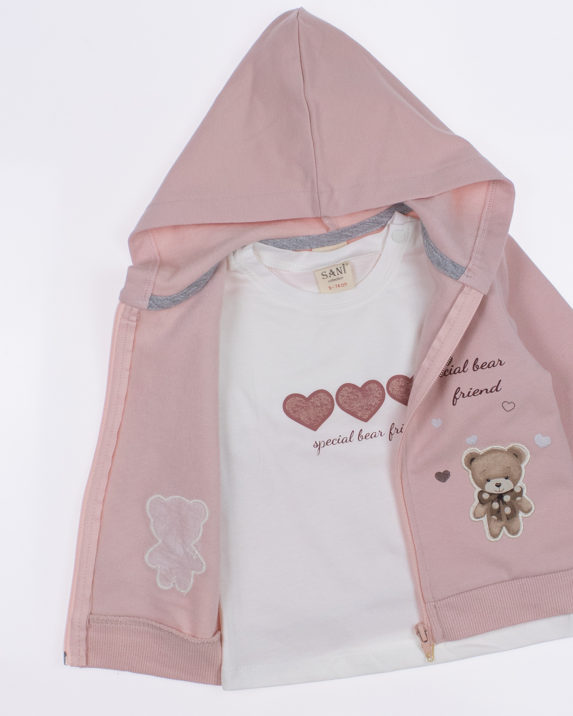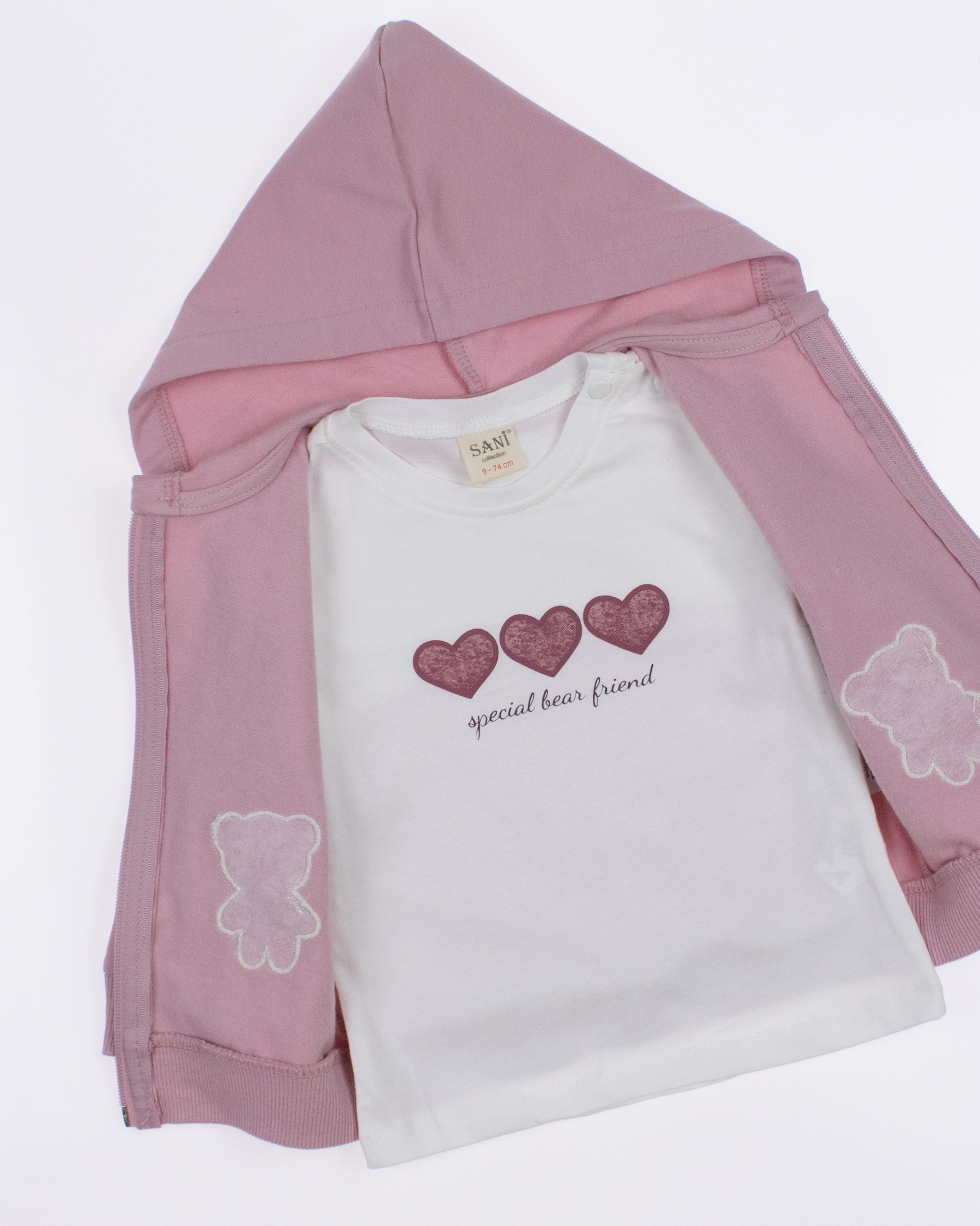 Теплый спортивный ясельный костюм оптом— это идеальный выбор для  маленькой модницы. Он состоит из трех стильных предметов, которые обеспечивают как комфорт, так и опрятный внешний вид. Костюм выполнен из качественного трикотажа  с начесом.