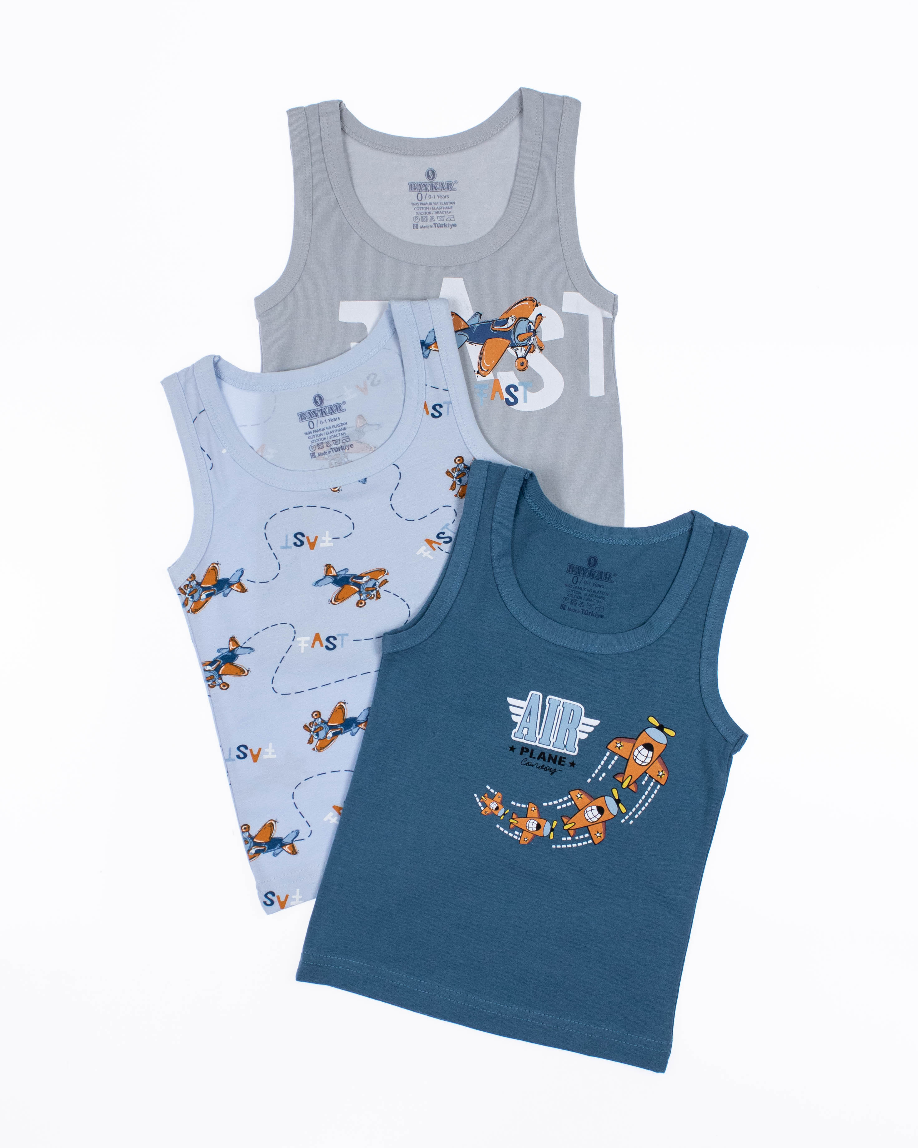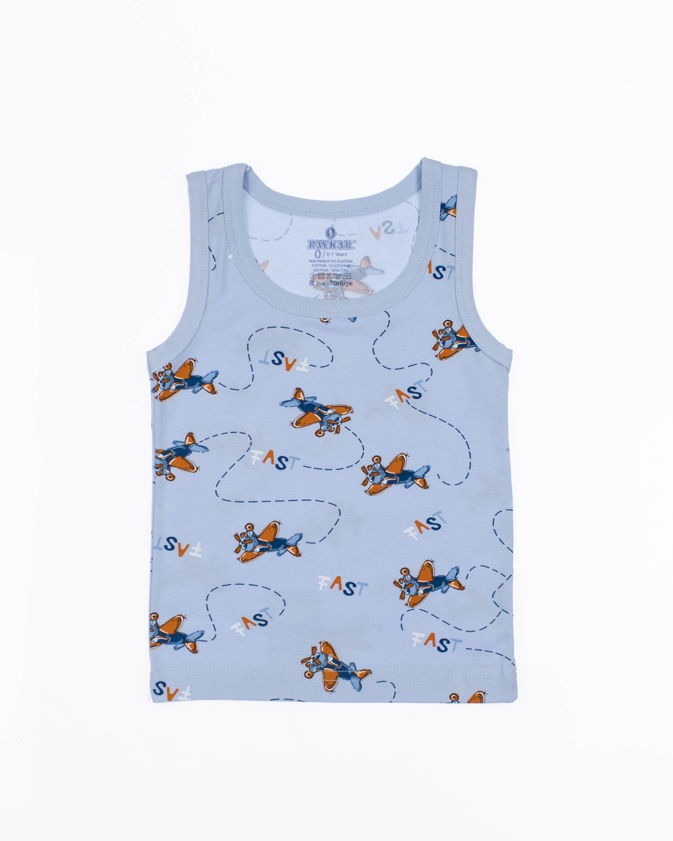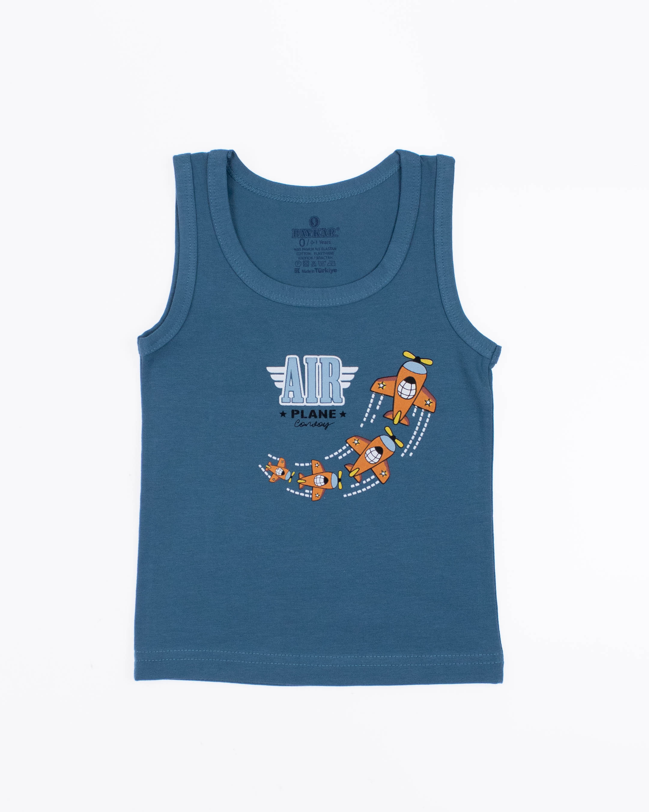 Майка для мальчика  от турецкого бренда BAYKAR - это гарантия комфорта, практичности и стильного дизайна. Изделия изготовлены из качественного хлопкового трикотажного полотна с добавлением прочной эластановой нити, не требуют особого ухода, не линяют и не растягиваются после стирки. Особенности моделей - классический крой, популярные расцветки и принты - делают майки универсальными в носке: их можно использовать как нательное белье, домашнюю одежду или как часть повседневного летнего гардероба.