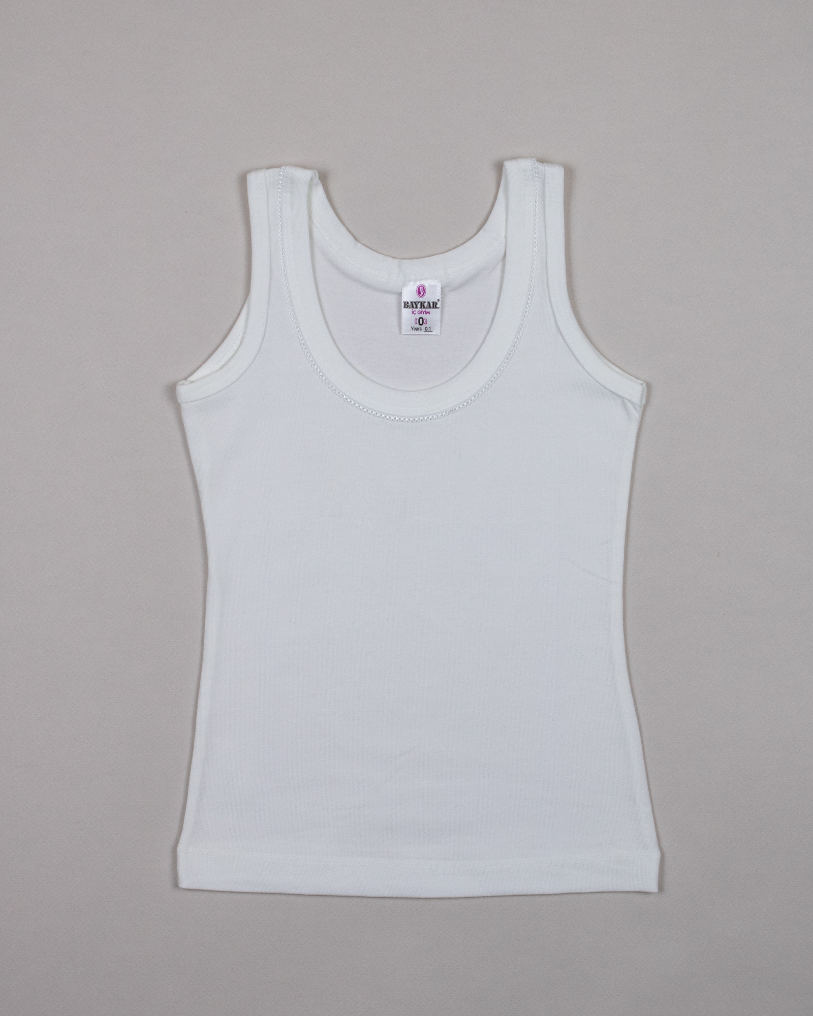 Белая бельевая майка Baykar для девочек оптом. Однотонная майка без рисунка, классическая модель для ежедневной носки. Майка для девочки идеально под блузки белого цвета. Майка на тонких и широких бретелях может использоваться как для сна , в школу , под одежду . Ткань очень практична, комфортна и гипоалергенна. Белье для девочек не мнется, хорошо тянется, сохраняя первоначальный вид после многочисленных стирок.