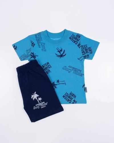 Костюм  Unruly для мальчика оптом, состоит из футболки и шорт. Модель выполнена из хлопкового полотна и оформлена печатным принтом. Футболка прямого кроя, с округлым вырезом горловины. Ткань кулирная гладь.